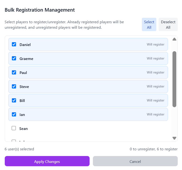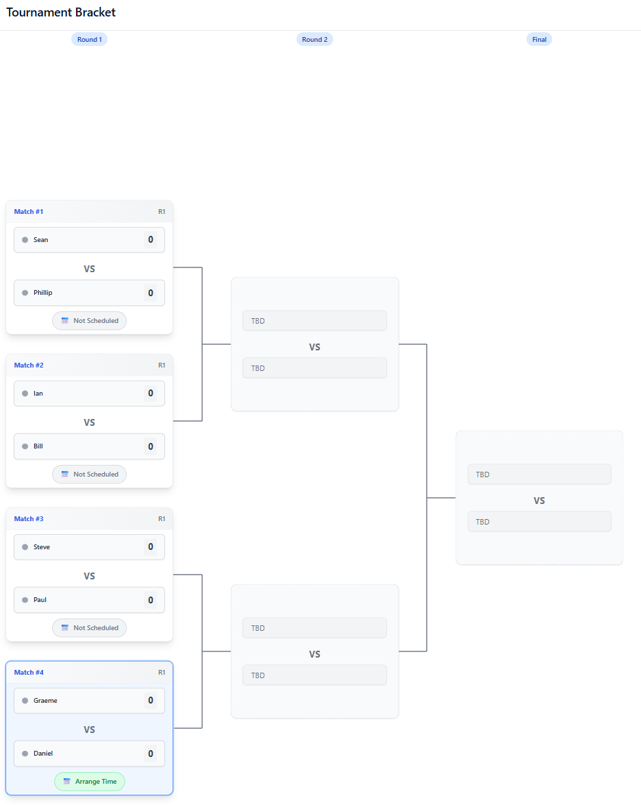 Flexible tie arrangements – players can arrange ties themselves, or admins can manage everything centrally.