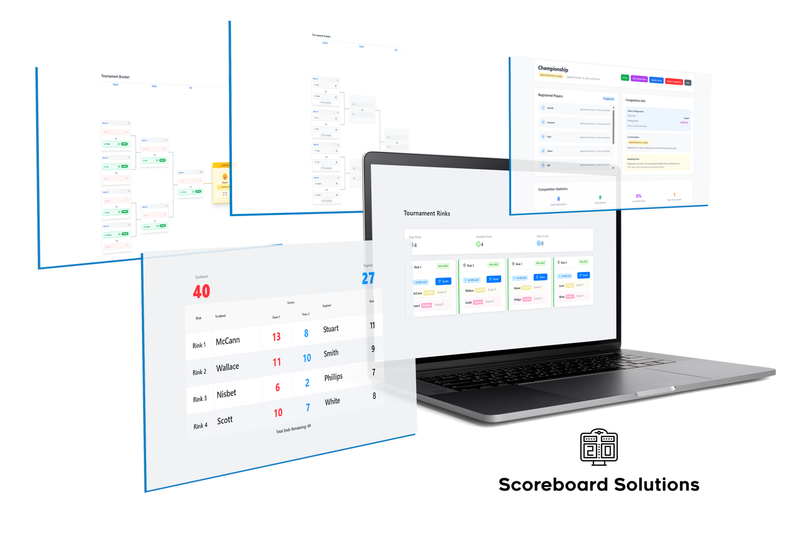 Digital rink-scoring touchscreens are installed and connected to your club’s management system. Players interact with these to updates scores and declare outcomes.